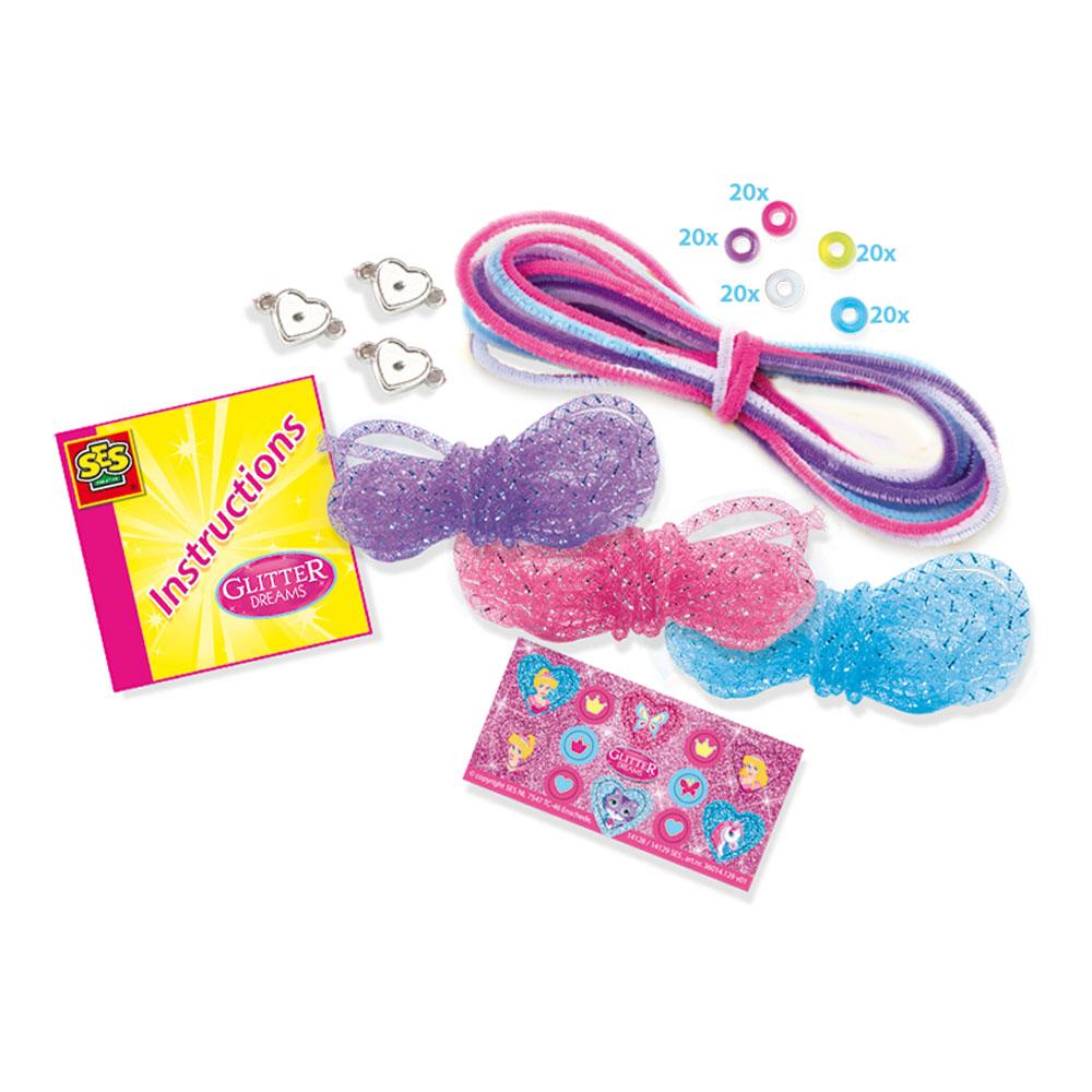 Set creativ, Bratari cu margele, sclipici si accesorii decorative. Cu sarma stralucitoare si cu materialul textil, puteti proiecta singuri cele mai frumoase bratari.