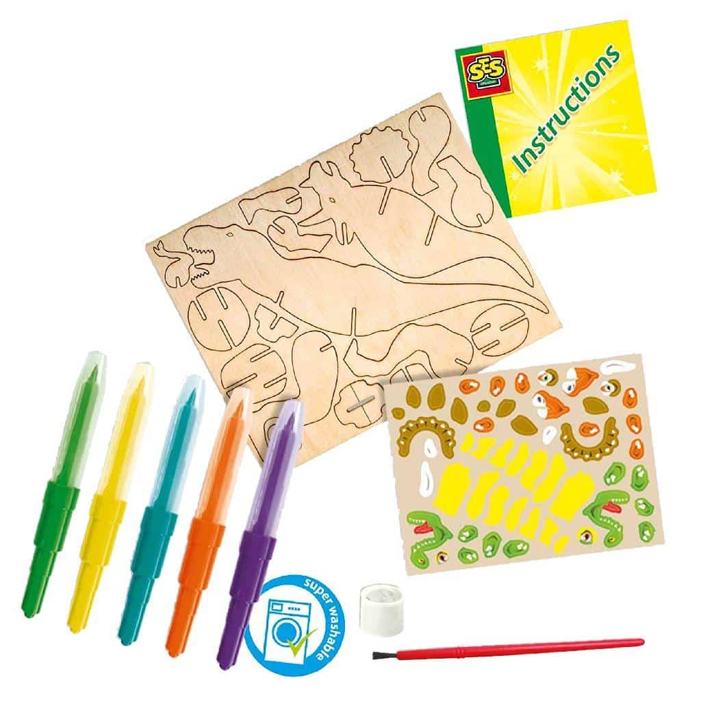 Set creativ, Desenez dinozauri din lemn cu markere cu aerograf