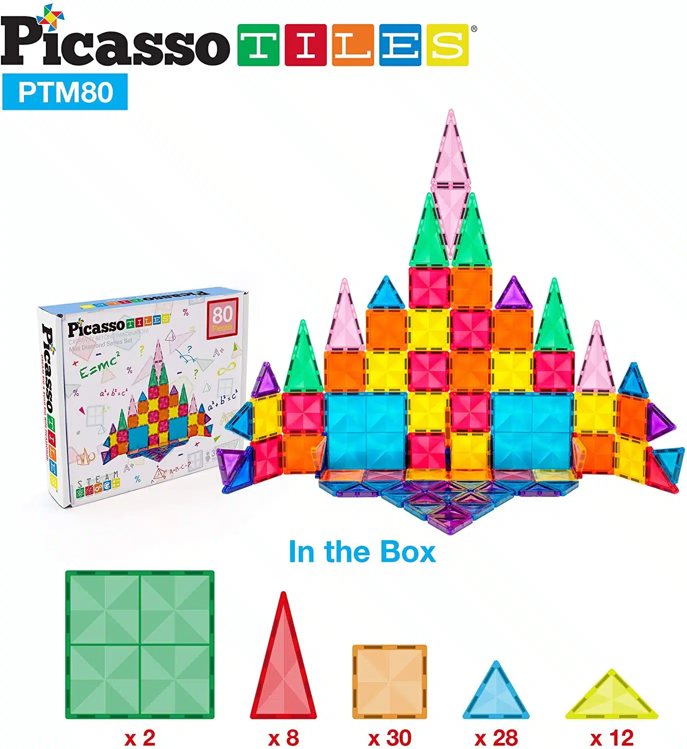 Set magnetic de construit PicassoTiles Mini Diamond 80 piese – Caracteristici