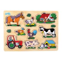 Puzzle din lemn cuburi, Animale de la ferma, 3 x 3